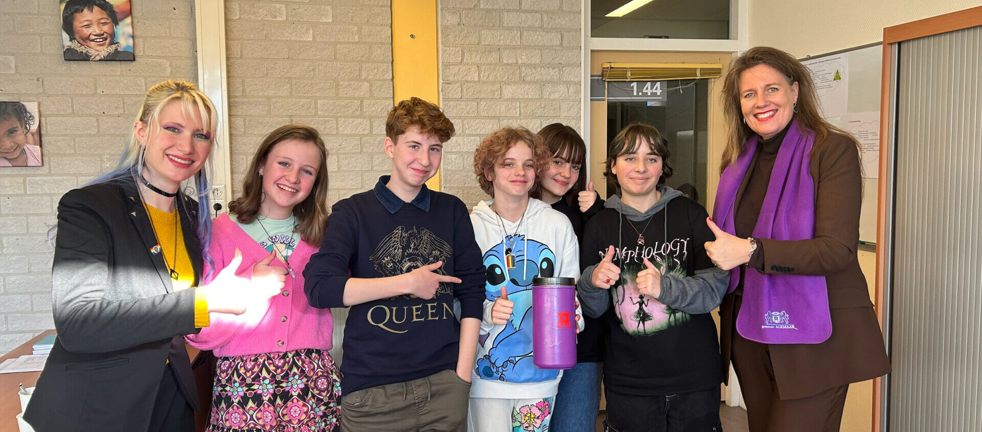 Tevens werd de paarse brievenbus bij ons geplaatst zodat iedereen kan aangeven wat wij met elkaar nog te verbeteren hebben als school én als Gemeente Alkmaar, als het gaat om de boodschap ‘Iedereen is hier welkom!’