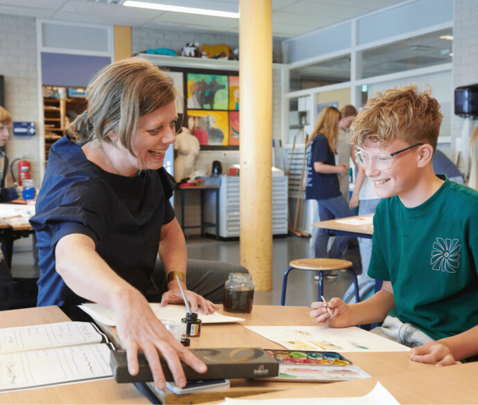 Je staat er natuurlijk niet alleen voor. Je leert veel door samen te werken met andere leerlingen en uiteraard helpen de docenten je. Je mentor voert regelmatig een gesprek met je over hoe het gaat en wat voor jou de beste aanpak is. Samen bespreken jullie jouw werk en nemen jullie de planning van de komende tijd door. Maatwerk dus!