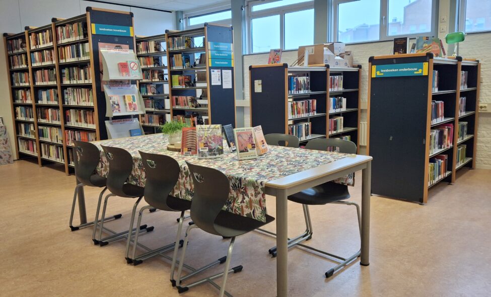 In dit lokaal vind je een mooie leestafel, twee vaste pc’s, een knusse leeshoek en natuurlijk al jouw favoriete titels!
